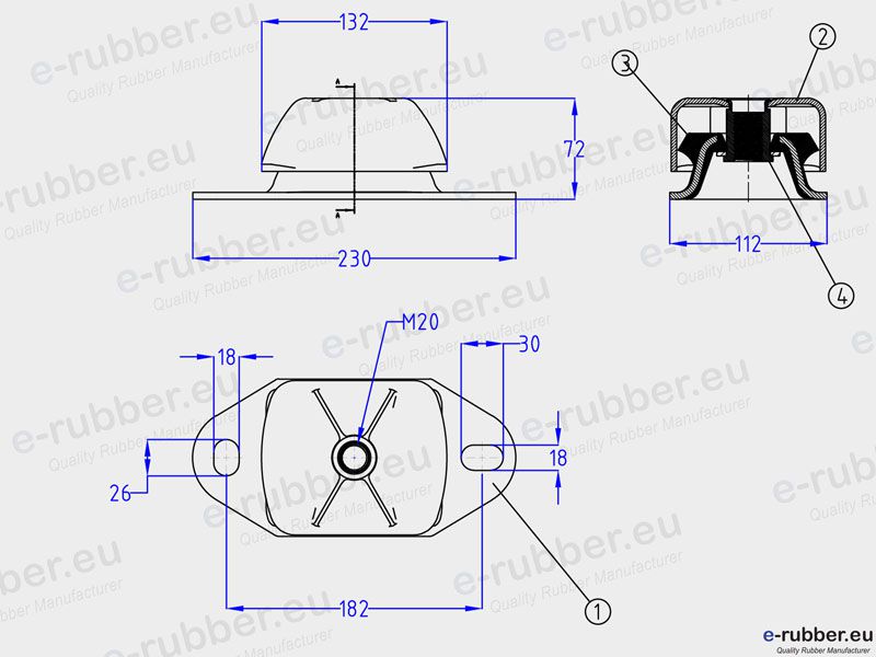 RCS 182 M20 Antivibration Mount | Load Charge: 225 – 1200 kg